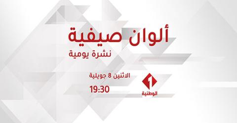 تبث القناة الوطنية الأولى بداية من اليوم الإثنين 8 جويلية على الساعة السابعة والنصف مساء نشرة يومية بعنوان ألوان صيفية تعنى بالمهرجانات الصيفية وبالتظاهرات الثقافية.