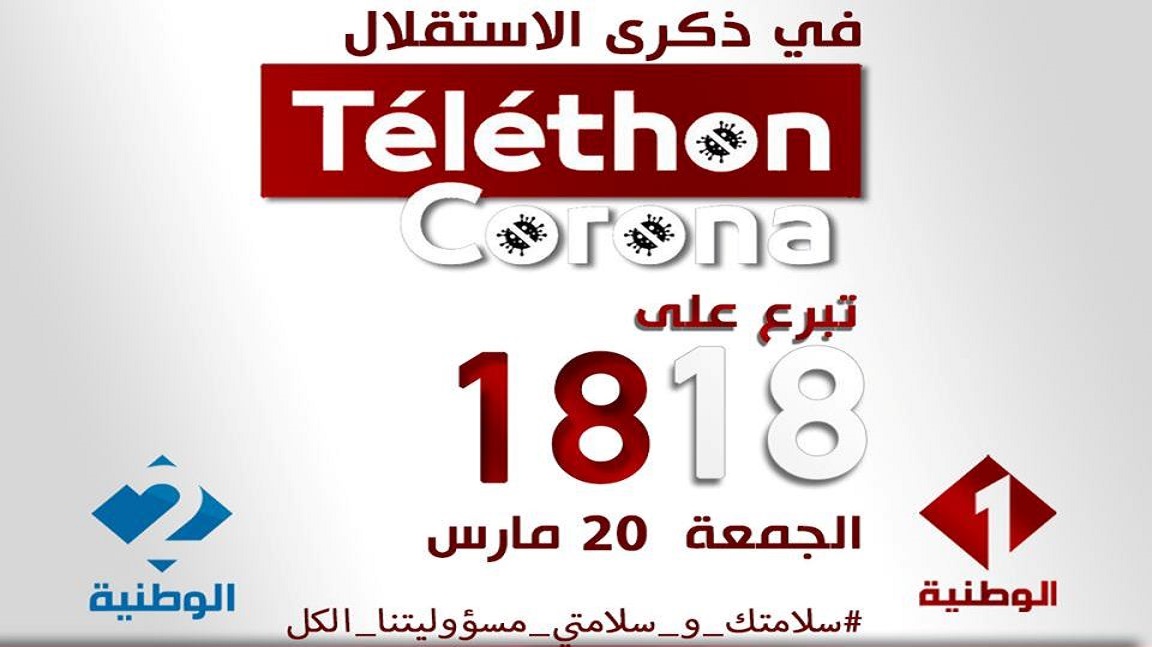 معاضدة للمجهود الوطني في مجابهة وباء فيروس كورونا تساهم التلفزة التونسية بالاشتراك مع الإذاعات والتلفزات العمومية والخاصة في مبادرة تضامنية تحت عنوانعيد الاستقلال.. عيد التضامن تيليطون 1818
