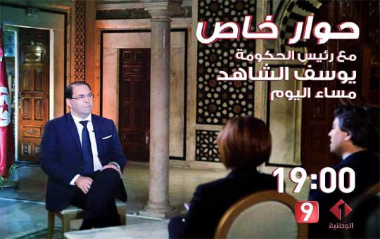 حوار خاص مع رئيس حكومة تصريف الأعمال السيد يوسف الشاهد، مساء اليوم الأربعاء على الساعة السابعة مساء في بث مشترك بين القناة الوطنية الاولى و قناة التاسعة