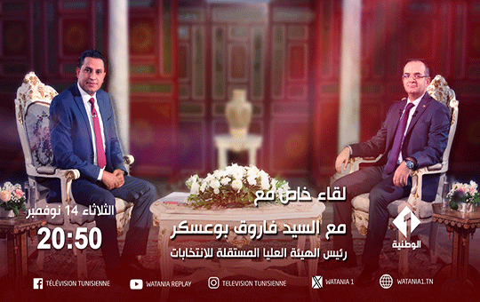 استعدادا للانتخابات المحلية في 24 ديسمبر 2023 تبث الوطنية الأولى في سهرة الثلاثاء 14 نوفمبر مباشرة إثر النشرة الرئيسية للأخبار لقاء خاص مع رئيس الهيئة العليا المستقلة للانتخابات السيد فاروق بوعسكر.